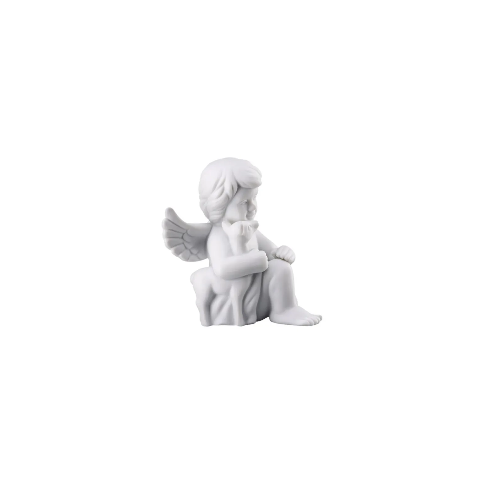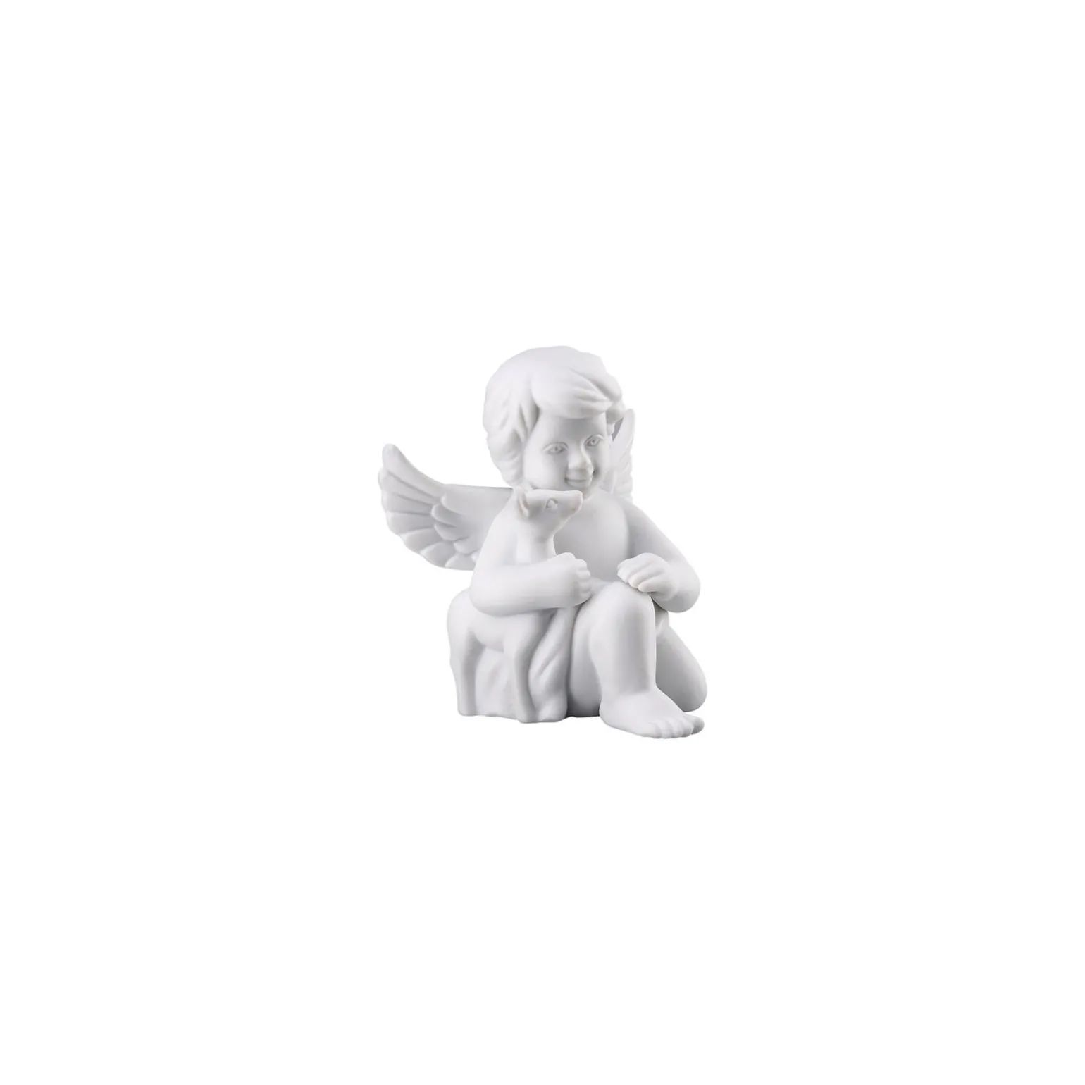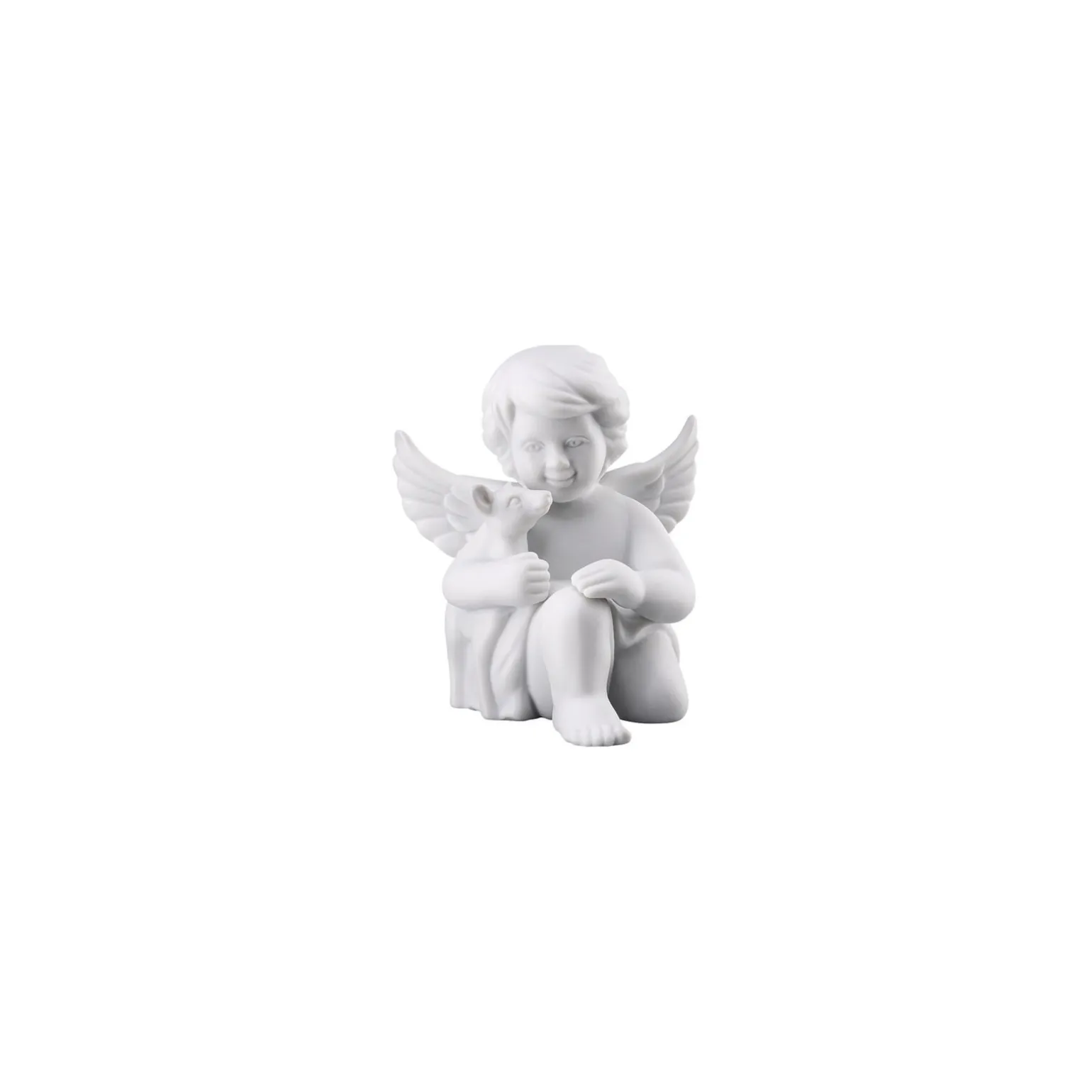 Lassen Sie sich von unserem kleinen Rosenthal Porzellanengel mit Bambi im Arm verzaubern – Ø 5,1 cm – h 6,0 cm, Porzellan, Weiss Matt