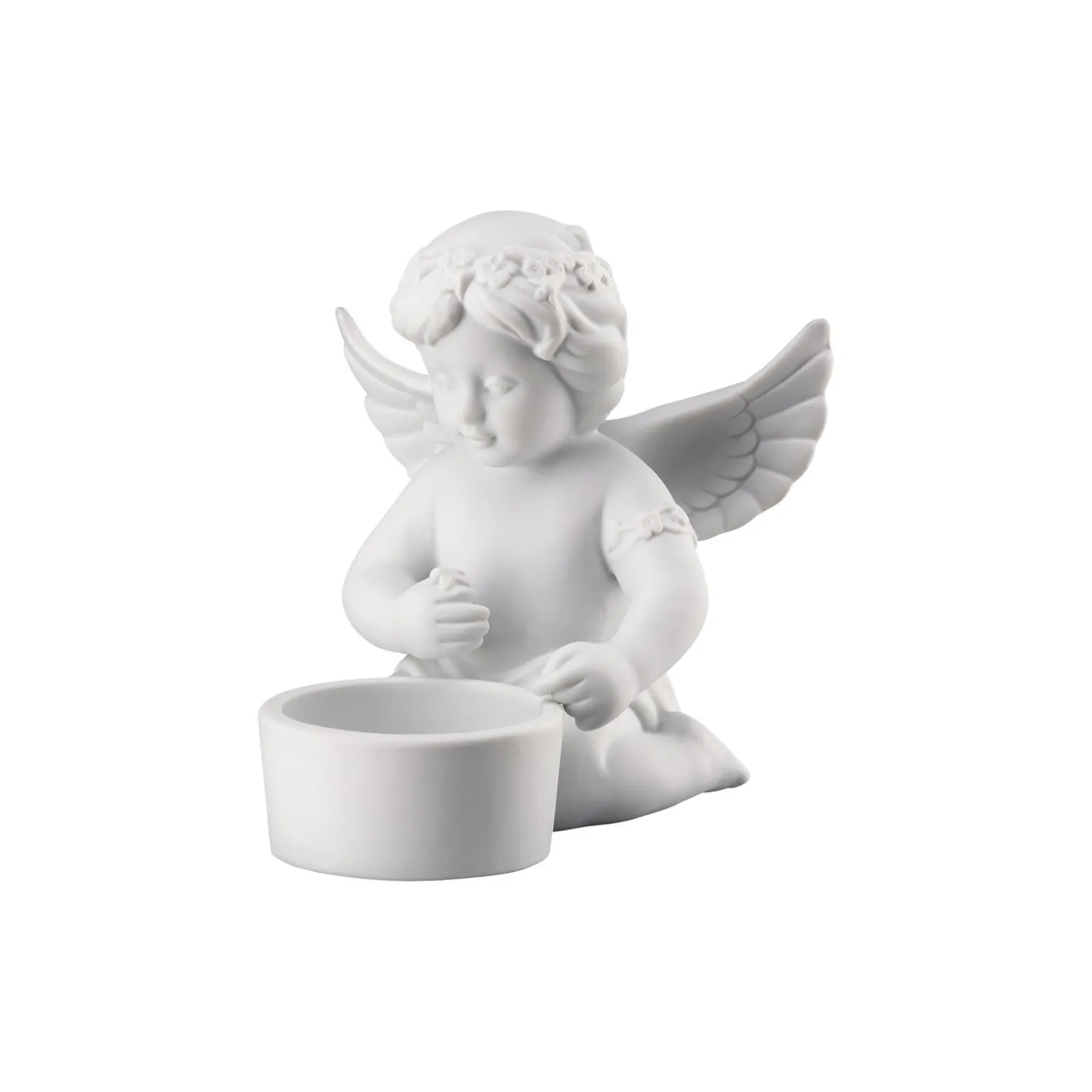 Der fröhliche Rosenthal Engel mit Blumenkranz sorgt als Porzellan Tischlicht für schöne Akzente Ø 8,8 cm – h 10,2 cm