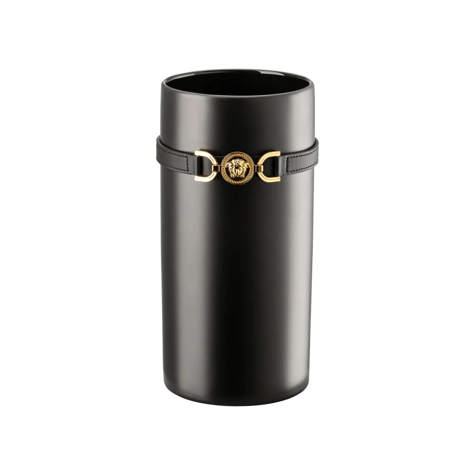 Versace Medusa ’95 Black Vase – Zylindrisch – Ø 12,2 cm – h 24,6 cm, Porzellan, Leder